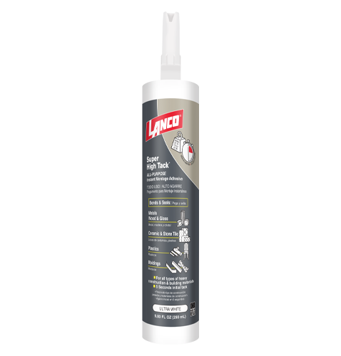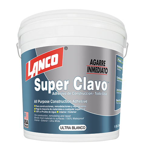 Lanco® Super Nail™ is an ultra high performance, non-flammable white water-based acrylic construction adhesive designed to bond paneling, hardboard, foam moldings, gypsum wallboard, plywood, particle board, tile board and cork board.