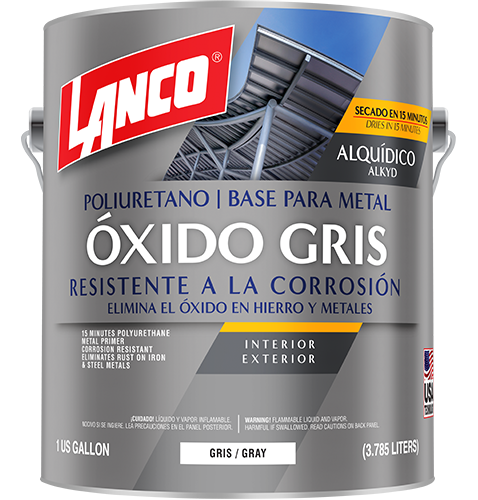 Lanco® Painter’s Oil Oxide™ is an alkyd resin red, white, and gray metal primer. This high-build corrosion resistant primer contains rust-inhibitive pigments to perform a better protection against rust and adheres tightly to clean metal and existing top coats.