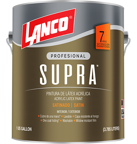 Lanco® SUPRA™ is an acrylic resin satin interior and exterior paint, that offers lasting beauty and protection for previously painted surfaces. Has excellent hiding and color retention properties, as well as good resistance to yellowing, cracking, chipping, peeling, fading, and fungus.